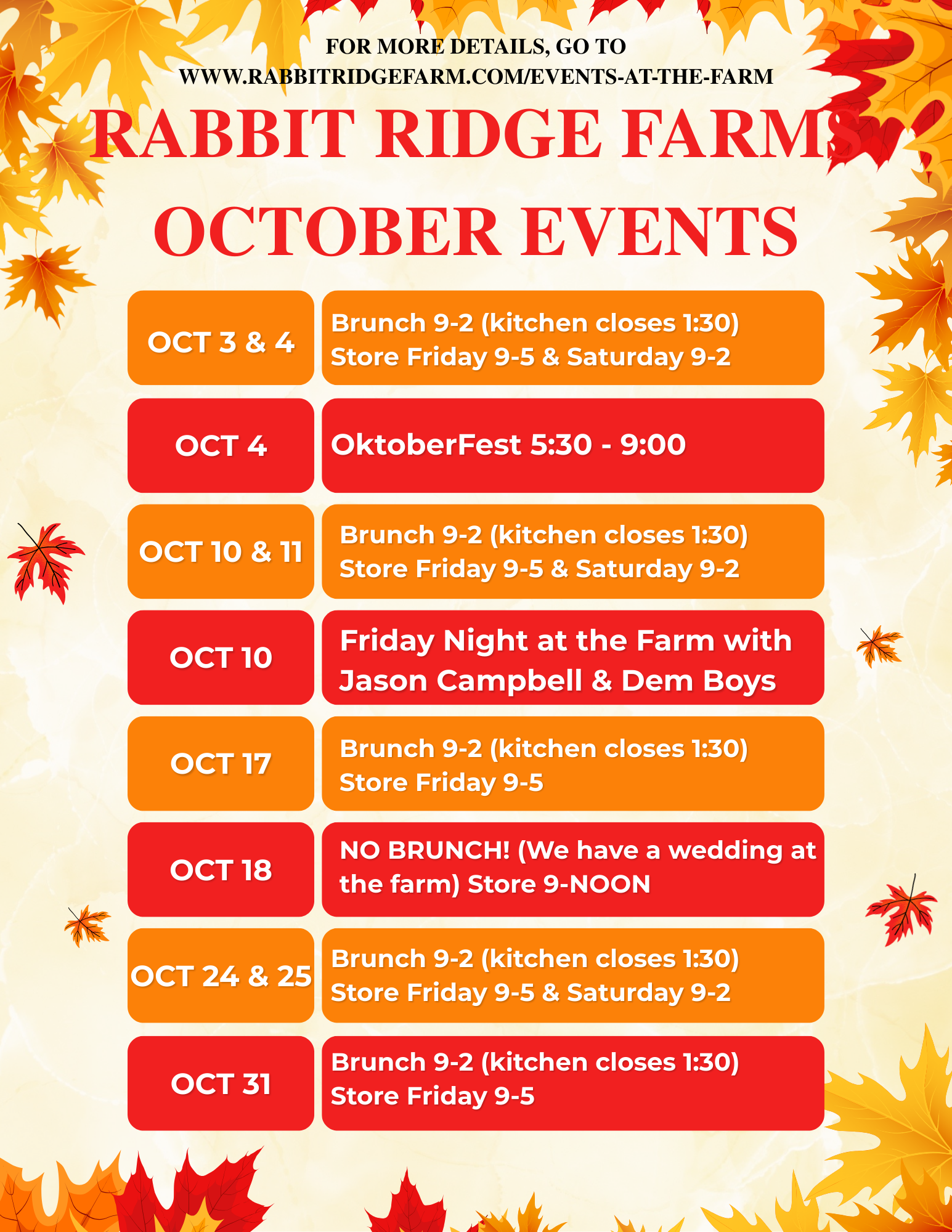 SPECIAL EVENTS at the farm...